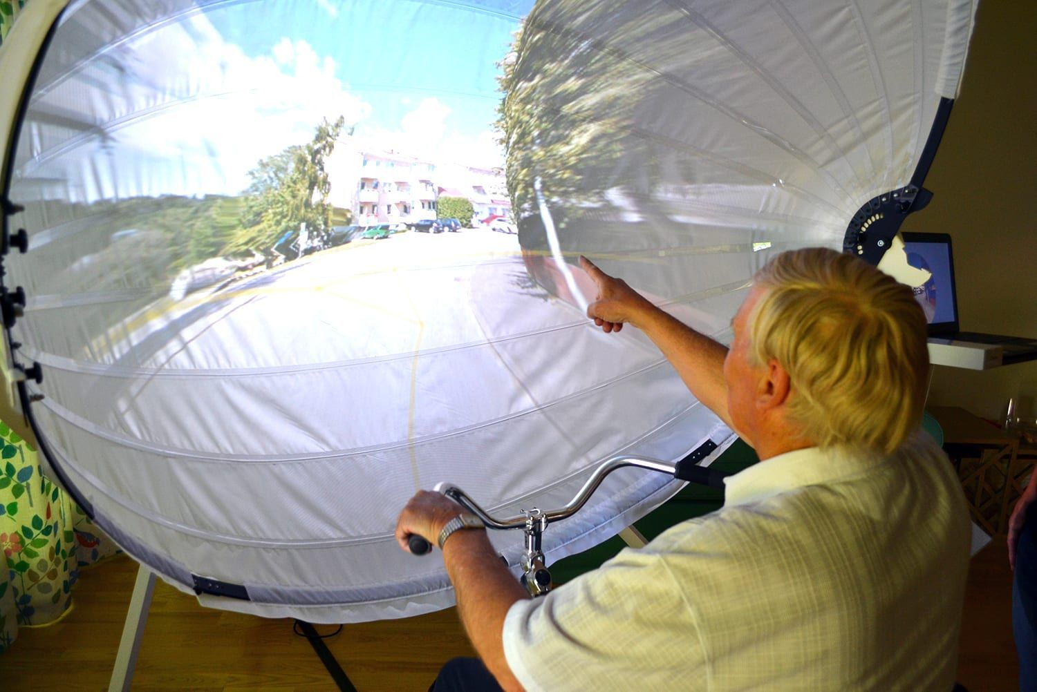 82 year old Henrik lives in a Stockholm care facility and has used BikeAround five times in the last two weeks. While on the BikeAround Henrik literally cycles through his memories - traveling virtually through the locations and landscapes of his life while pedaling a stationary bike.
